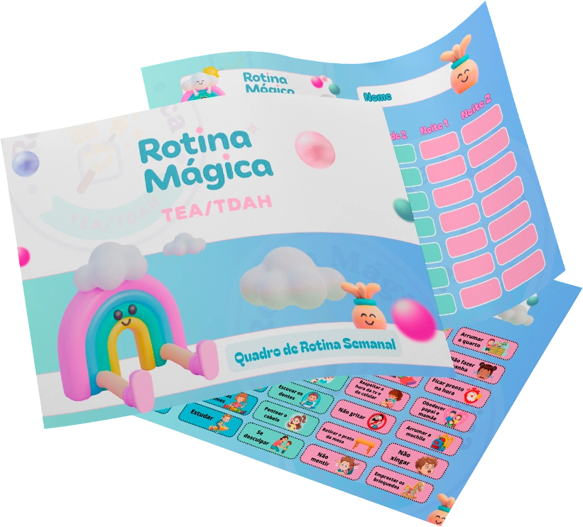 Mas quando ela VÊ num quadro colorido e organizado? Entende TUDO instantaneamente. Sem ansiedade. Sem crise.